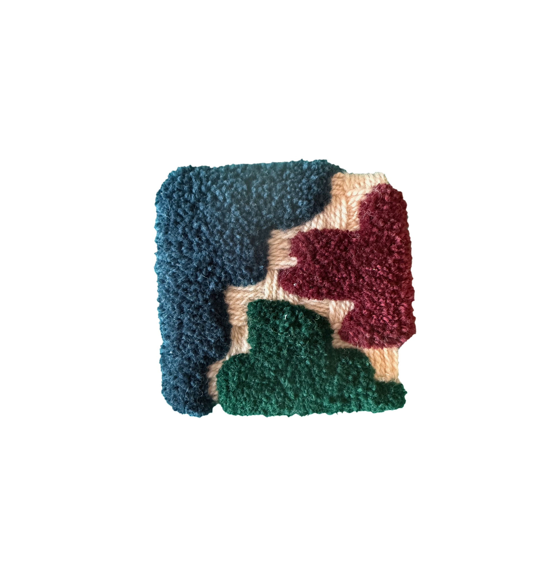 from a spring 2025 body of work, 'pieced' is a dimensional, tactile work composed of wool, cotton, and other reclaimed yarn. the work is an experiment in combining fiber in multiple ways in a manner typically reserved for paintings.